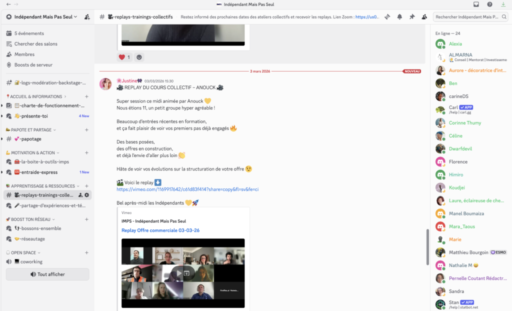 EXCELLENT Basée sur 195 avis Publié sur Caroline PARDON24/02/2026 Mon seul regret concernant la formation IMPS ? Ne pas l'avoir suivie avant de créer mon entreprise ! Cette formation m'a énormément aidée à développer ma casquette commerciale. Le contenu créé par Timothée est hyper complet et parfaitement structuré : les vidéos sont très pédagogiques, appuyées par des exercices concrets et des fiches de synthèse. Les trainings collectifs (qui sont d'ailleurs dispos en replay) sont un vrai plus, notamment grâce à Jean-Marc qui est littéralement bourré d'astuces. J'ai pu financer cette formation avec mon CPF pour inclure un coaching individuel, et j'ai eu la chance d'avoir Coralie. Toujours positive, c'est une personne qui vous tire vraiment vers le haut ! Nous avons validé ensemble chaque étape. Elle connaissait mon domaine et a su me pousser à passer à l'action pour réaliser mes supports, alors que je ne suis pas du tout commerciale à la base. Elle a été un véritable guide : ses réflexions et ses questions étaient toujours très pertinentes. Grâce à elle, je ne me sentais vraiment plus seule. Encore aujourd'hui, elle prend de mes nouvelles, preuve que notre réussite lui tient profondément à cœur. Bref, c'est une équipe de passionnés ultra motivants. Je recommande à 100 % !Publié sur Yannick Leze20/02/2026 J’ai suivi une formation certifiante avec IMPS, accompagnée par Coralie Haas, et je ne peux que recommander cette expérience ! Grâce à son professionnalisme, sa disponibilité et son dynamisme, j’ai pu acquérir des compétences clés en démarches commerciales, un domaine que je maîtrisais peu auparavant. L’accompagnement a été à la fois rigoureux et bienveillant, ce qui m’a permis de réussir ma soutenance avec confiance. Aujourd’hui, les résultats sont concrets : une meilleure maîtrise de mon activité, une augmentation significative de mes demandes clients, et des partenariats prometteurs. Un grand merci à Coralie et à toute l’équipe d’IMPS pour leur expertise et leur soutien. Si vous cherchez une formation de qualité, n’hésitez pas une seconde ! Yannick LEZEPublié sur Thibault Machard17/02/2026 J'ai effectué ma formation chez IMPS, je recommande fortement, gros plus avec le coaching personnalisé. Guy m'a accompagné du début à la fin de cette formation, un professionnalisme à toute épreuve et des conseils au top, un grand merci à lui pour tout les efforts qu'il a fourni pour m'aider à me lancer.Publié sur alice hubaut17/02/2026 J'avais commencé mon activité en indépendante mais j'étais perdue. J'ai appris énormément et réussi à dépasser mes peurs sur les domaines qui m'était inconnu: la prospection, la communication sur les réseaux sociaux à mon image, le partenariat... Aujourd'hui, j'en vois les bénéfices puisque tout est plus simple et me paraît naturel Le petit plus, c'est l'accompagnement d'Anouck qui a su facilement me comprendre et m'accompagner en douceurPublié sur Camille H14/02/2026 Un vrai accompagnement professionnel, cela m'a beaucoup aidé à développer un cadre de travail. Maintenant je sais où je vais. Les intervenants sont tous bienveillants et pro. Je recommande Mille fois 👍🏻Publié sur Perrine Lanoue11/02/2026 Je suis pleinement satisfaite de cette formation, qui est à la fois complète, structurée et concrète. Elle permet de prendre conscience des véritables enjeux et difficultés de l’entrepreneuriat, tout en donnant des outils clairs pour avancer avec méthode et efficacité. Aujourd’hui, je me sens réellement armée et prête à réussir dans ma nouvelle voie professionnelle. La formation m’a permis d’affiner mon positionnement, de mieux cibler ma clientèle et d’être beaucoup plus pertinente dans mes démarches avec une stratégie qui porte ses fruits. Un immense merci à Coralie pour son accompagnement bienveillant, son professionnalisme et son énergie communicative. Ça a été un vrai plaisir d’être coachée par elle ! Je recommande cette formation à toute personne qui souhaite se lancer dans l’entrepreneuriat sur des bases solides et structurées.Publié sur Sarah D.04/02/2026 J'ai suivi la formation 360 AI accompagné par un coach. Formation de qualité qui regroupe beaucoup de connaissances. Elle nous apprend l'utilisation de plusieurs outils très intéressants et nous guide à les mettre en pratique. Je suis ravie de cette formation et de son accompagnement à la hauteur de ce qui est présenté 😊 Je remercie également ma coach Natacha qui m'a accompagné dans cette aventure !Publié sur Julie Thorel29/01/2026 J'ai suivi la formation IMPS (Indépendant Mais Pas Seul) avec Lola Sabah et j'en ressors pleinement satisfaite. Elle m'a permis de structurer mon activité pour pouvoir l'évoquer plus aisément et la développer. Tout cela de façon rythmée et pédagogue. Elle a su me guider avec bienveillance et en douceur pour m'aider à sortir de ma zone de confort. Au-delà de l'objectif "accompagner pour réussir le développement de son activité", c'est une véritable expérience humaine, enrichissante sur le plan du développement personnel; "Indispensable Mais Pas Seulement". Je recommande vivement. Un grand MERCI Lola !Publié sur Jeremie Burlen19/01/2026 Un accompagnement concret et bienveillant : on avance réellement et à notre rythme. L'objectif est simple : nous aider à réussir, Bonne continuation,