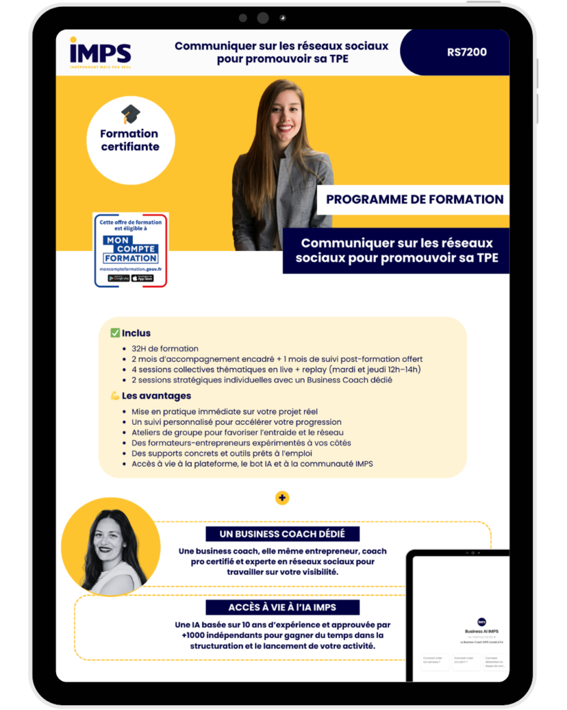 Un programme aligné avec la certification RS7200 – Communiquer sur les réseaux sociaux pour promouvoir sa TPE.
